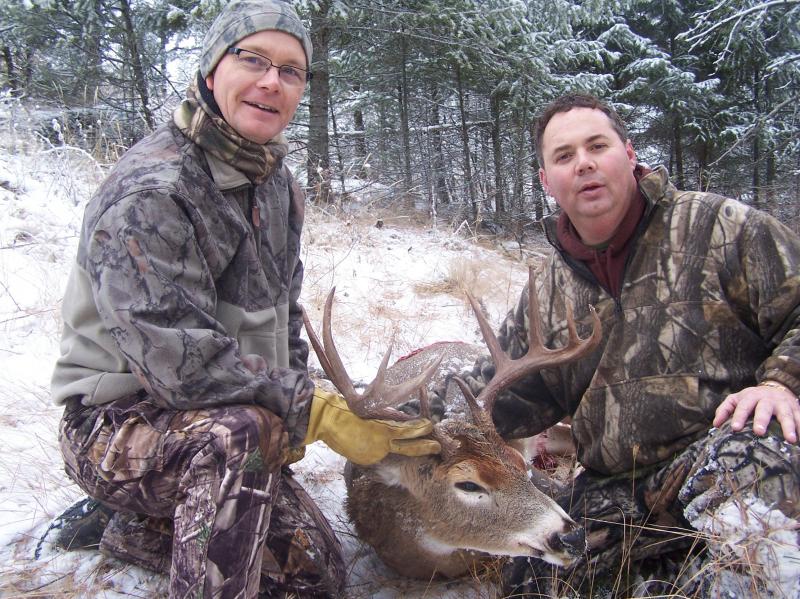 Dale's first day in the stand with a Big 8 that just showed up the day before Dale arirved in camp. Ty's last minute deer he got here a little late in the day, rushed him into the stand.after a short sit had deer there, was trying to get a shot at another buck when this come in, and stopped at 32 yards broad side.