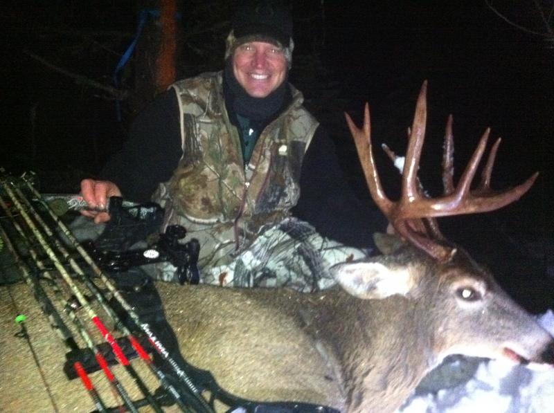 Ron, with the American Archer, had to stay a few days after his kill, for some more footage his kill happened a little on the quick side saw 5 bucks and no does before he shot this one.